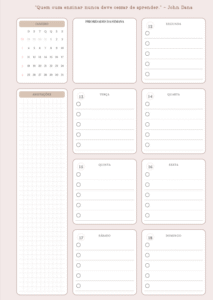 - Planner Imprimível – Visão Semanal: 162 páginas
